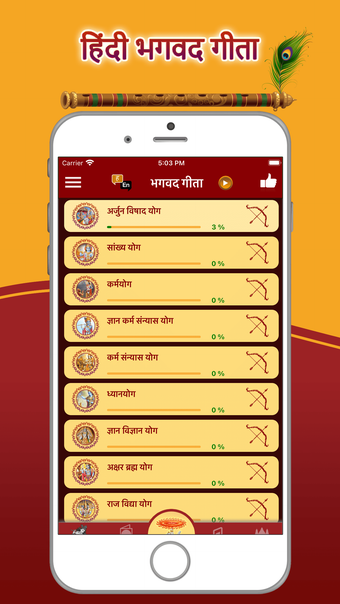 ฝ่ายตัวเองในปัจจุบันภูมิปัญญาของภาษีกาวาด์กีตา ข้อคิดที่เป็นเชื้อเชิญที่เจ้าพระคริช์น่าให้ความสำคัญกับอาจารย์อาร์จุณา แอพพลิเคชั่นการศึกษานี้เปิดเผยความสำคัญของความรู้เวดิก ซึ่งเป็นหลักของศาสนาฮินดู สำรวจ 18 บทและ 700 บทที่ลึกซึ้งถึงความจริงพื้นฐานของชีวิต ให้ความรู้เข้าใจเกี่ยวกับอิชวารา จีวา ปราครุติ คาลา และ การ์ม่า